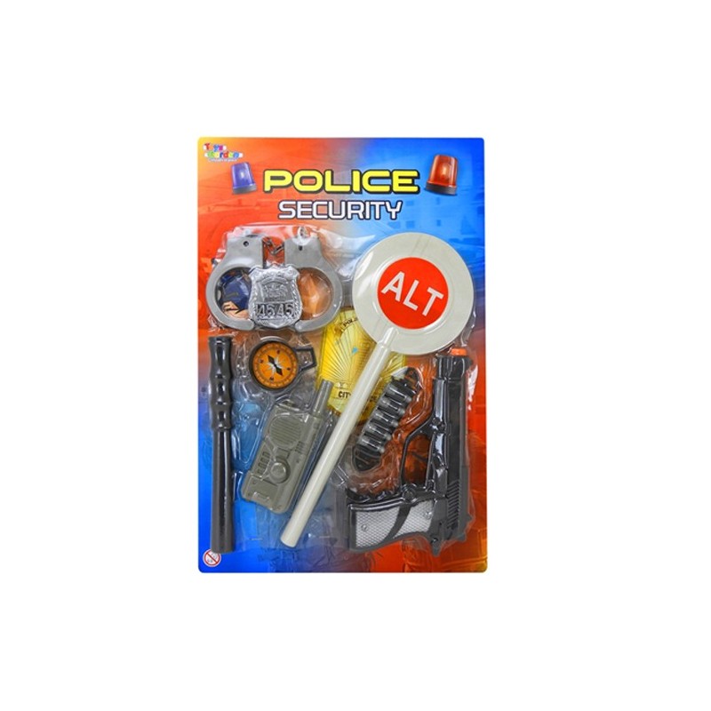 Set polizia in blister con paletta pistola manganello e manette